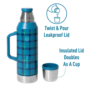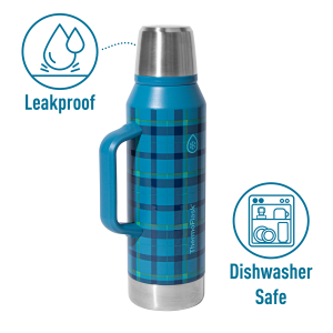 Perfect for everywhere from the office to your picnic blanket. our durable 1.5L thermal bottle keeps your favorite beverages hot or cold all day long and with its generous size is great for sharing. The ergonomic handle makes it easy to carry and drink from while the insulated lid doubles as a drinking cup and forms a tight leak-proof seal. With a wide opening mouth. it’s easy to clean and fill with anything. including ice.