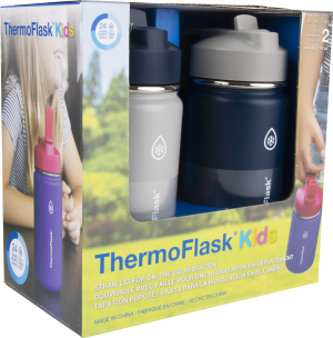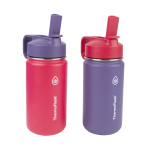 - Includes 2 x 14oz ThermoFlask® Kids Insulated Stainless Steel Water Bottles with Straw Lid