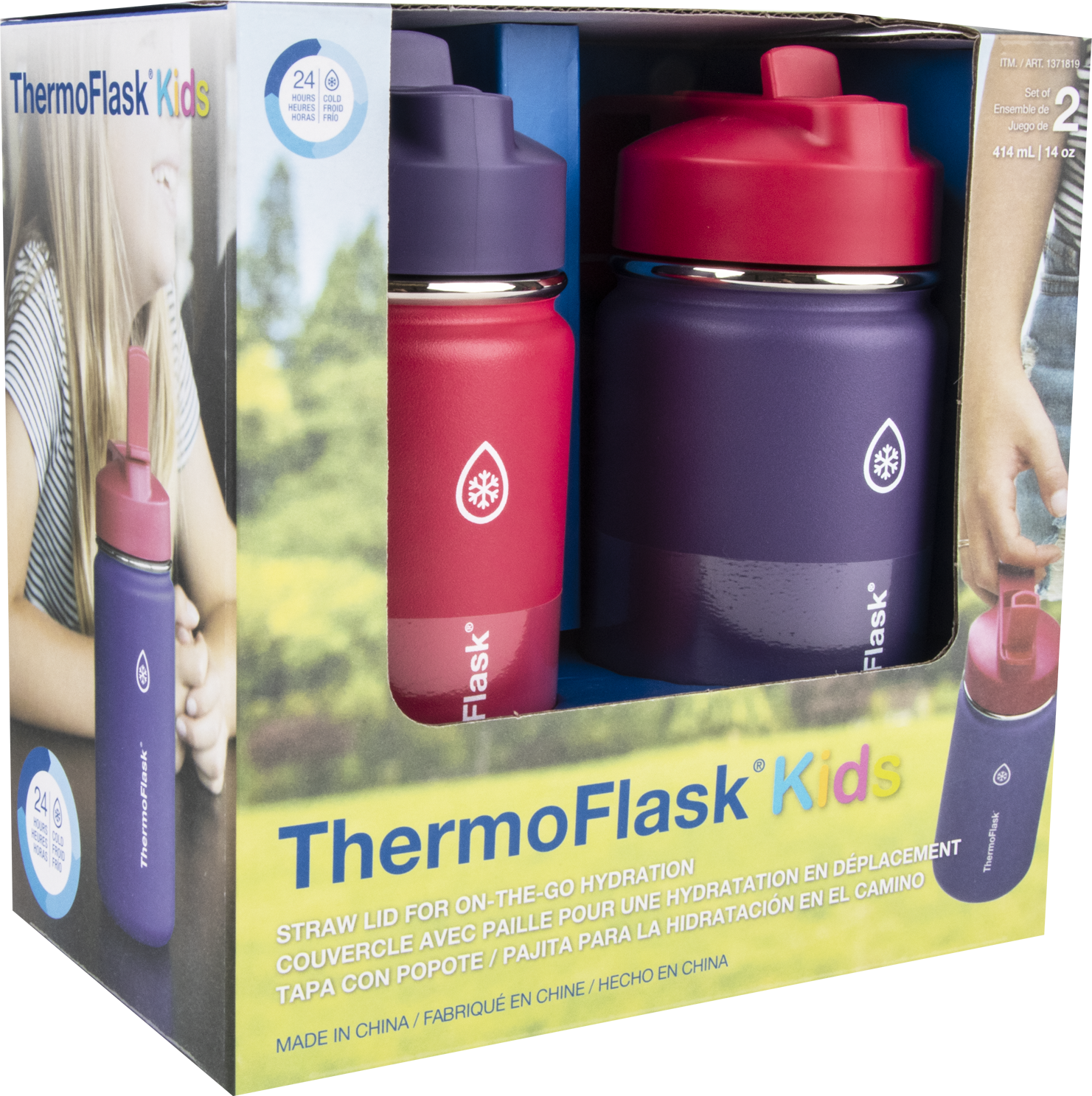 - Includes 2 x 14oz ThermoFlask® Kids Insulated Stainless Steel Water Bottles with Straw Lid
