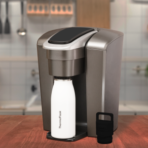 The ThermoFlask® Travel Mug is made for active people on the go. The sophisticated silhouette of the ThermoFlask Travel Mug is taken to the next level by combining leak-proof security with a Comfort-Sip™ leak-proof locking lid that lets you enjoy your coffee to the last drop. Whether you fill it at your local coffee shop or at home. where it fits under most single serve brewers. this travel mug is made for those on the go. The double-wall vacuum insulation retains beverage temperature. keeping it piping hot for up to 12 hours or ice cold for up to 24 hours.