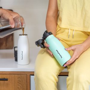 - Includes 2 x 17oz/0.50L ThermoFlask® Insulated Stainless Steel Travel Mug with FlipLock Lid