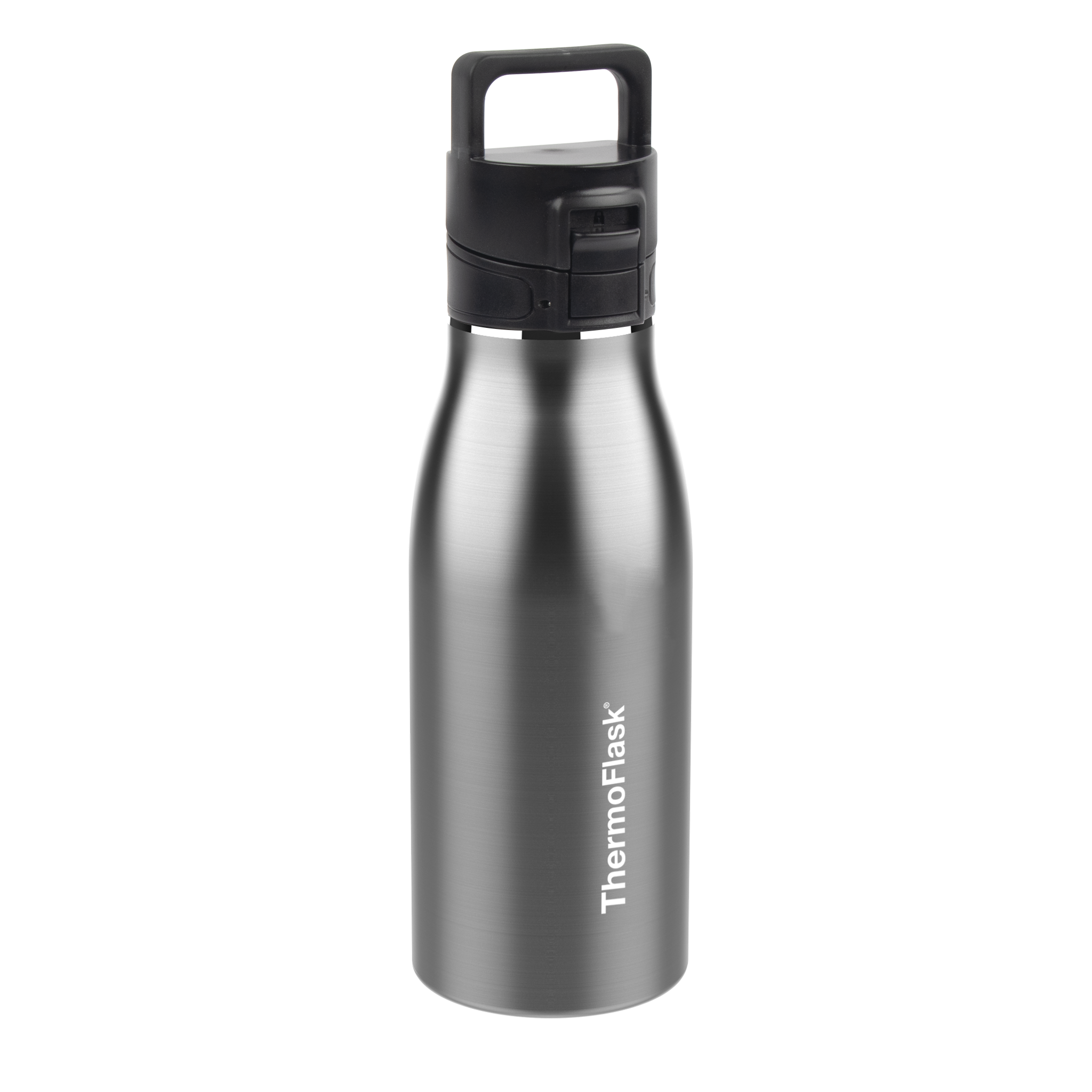 The ThermoFlask® Travel Mug is made for active people on the go. The sophisticated silhouette of the ThermoFlask Travel Mug is taken to the next level by combining leak-proof security with a Comfort-Sip™ leak-proof locking lid that lets you enjoy your coffee to the last drop. Whether you fill it at your local coffee shop or at home. where it fits under most single serve brewers. this travel mug is made for those on the go. The double-wall vacuum insulation retains beverage temperature. keeping it piping hot for up to 12 hours or ice cold for up to 24 hours.