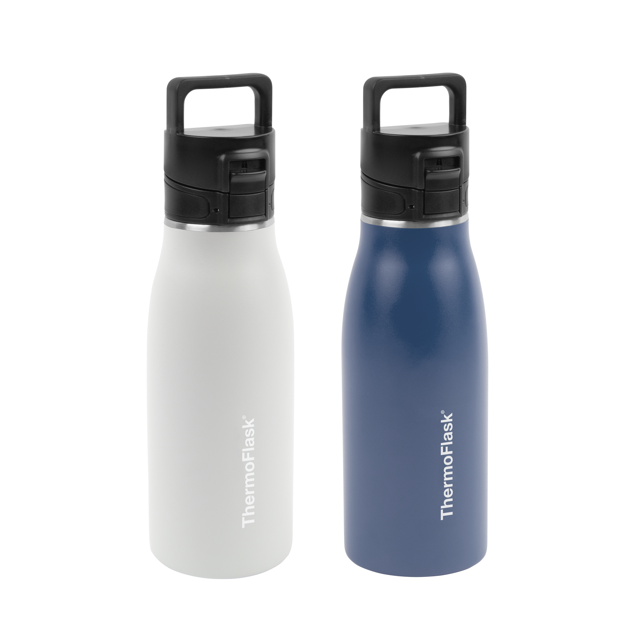 - Includes 2 x 17oz/0.50L ThermoFlask® Insulated Stainless Steel Travel Mug with FlipLock Lid