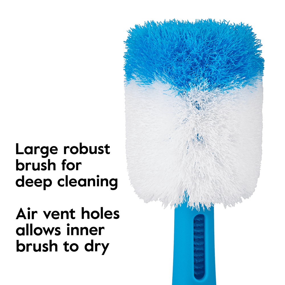 Get a pristine clean with the new Thermoflask Cleaning Brush! With a large brush head and long handle. it easily reaches the bottom of all bottles for a deep and thorough clean. Each 2-in-1 brush features an internal straw brush. The easy-grip handle is designed to rest standing up. Equipped with air vent holes for efficient drying. this is a must-have for keeping your bottle fresh!