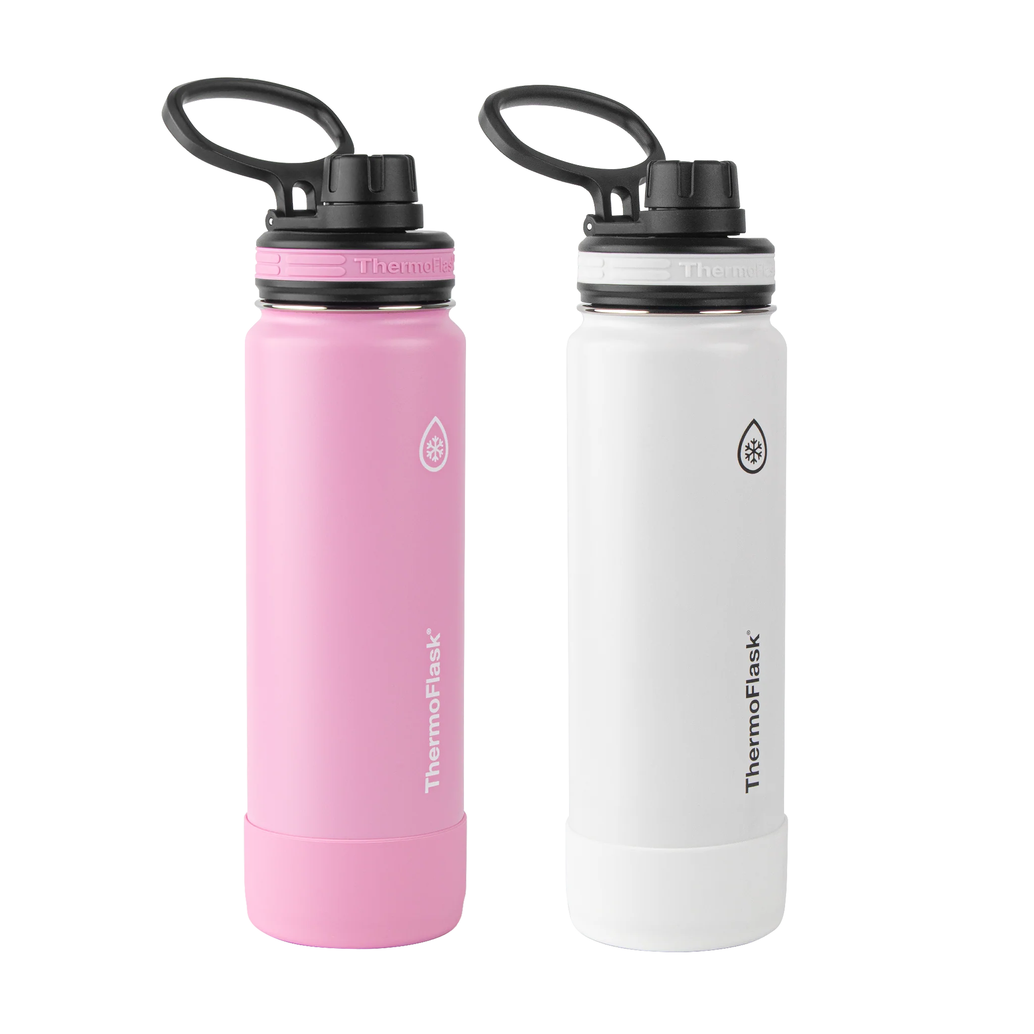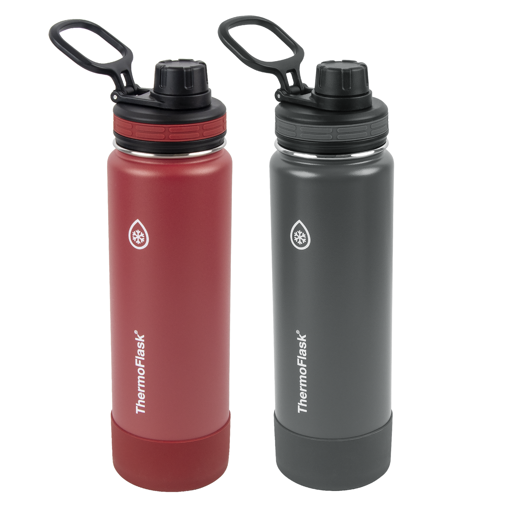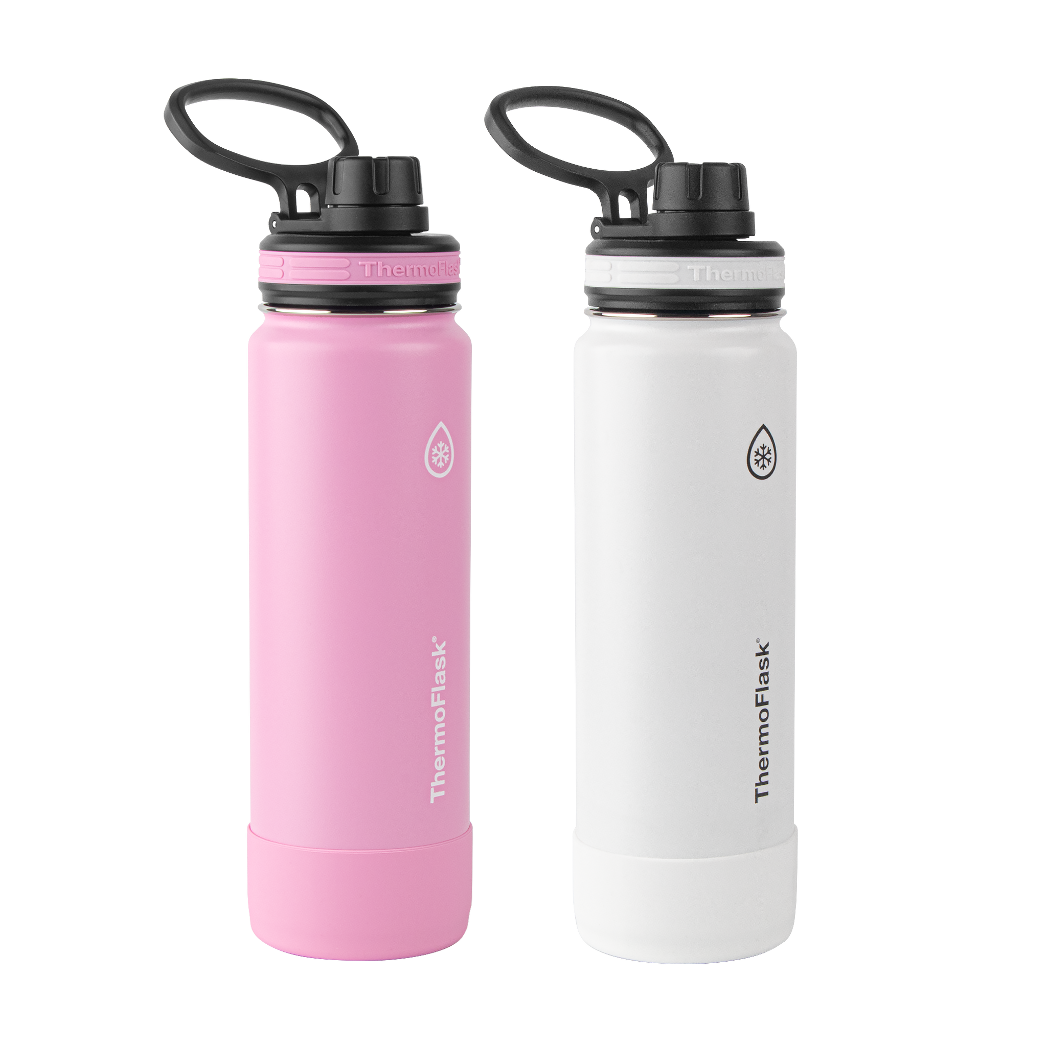 - Includes 2 x 24oz/0.71L ThermoFlask® Insulated Stainless Steel Water Bottles with Spout Lid