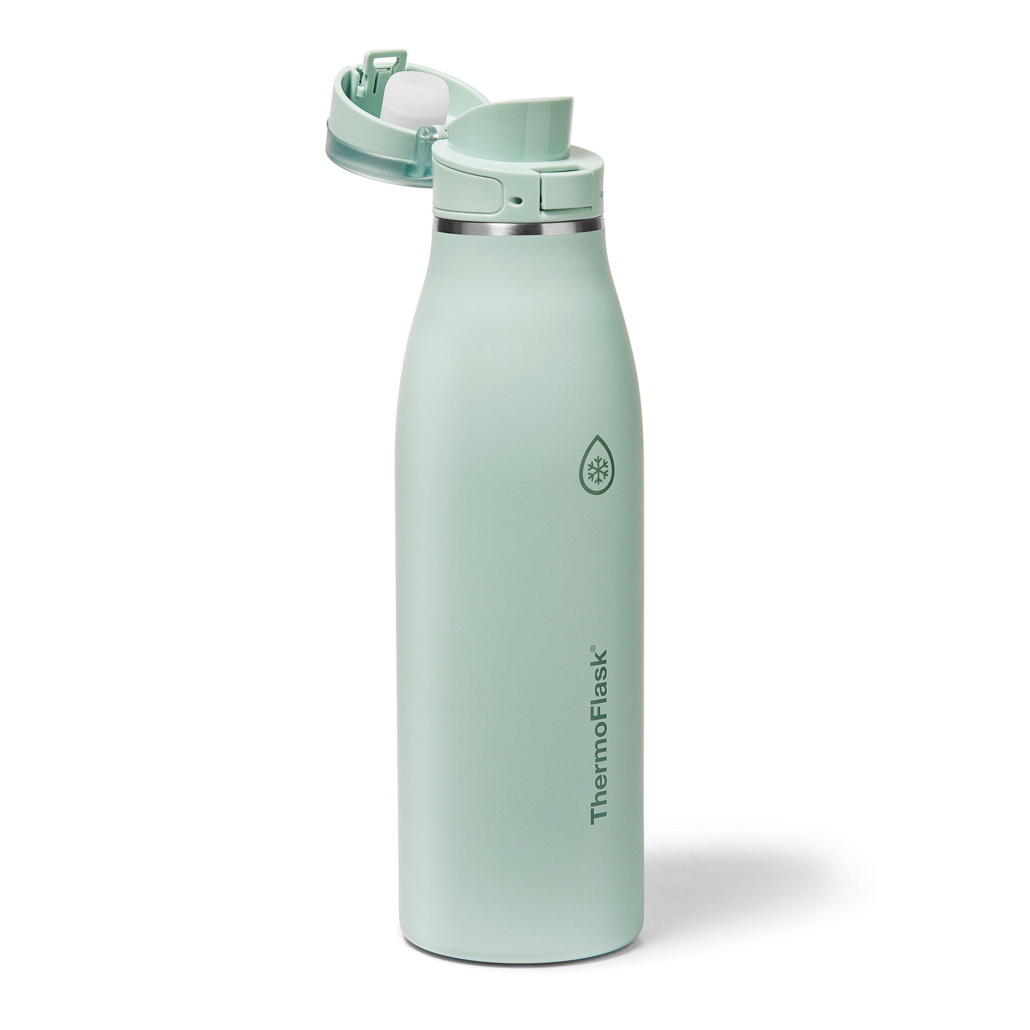 25oz ThermoFlask Soft Touch Traveler: leakproof. cupholder-friendly bottle with soft touch finish available with spout or straw lids. and all-day hot or cold drink performance.