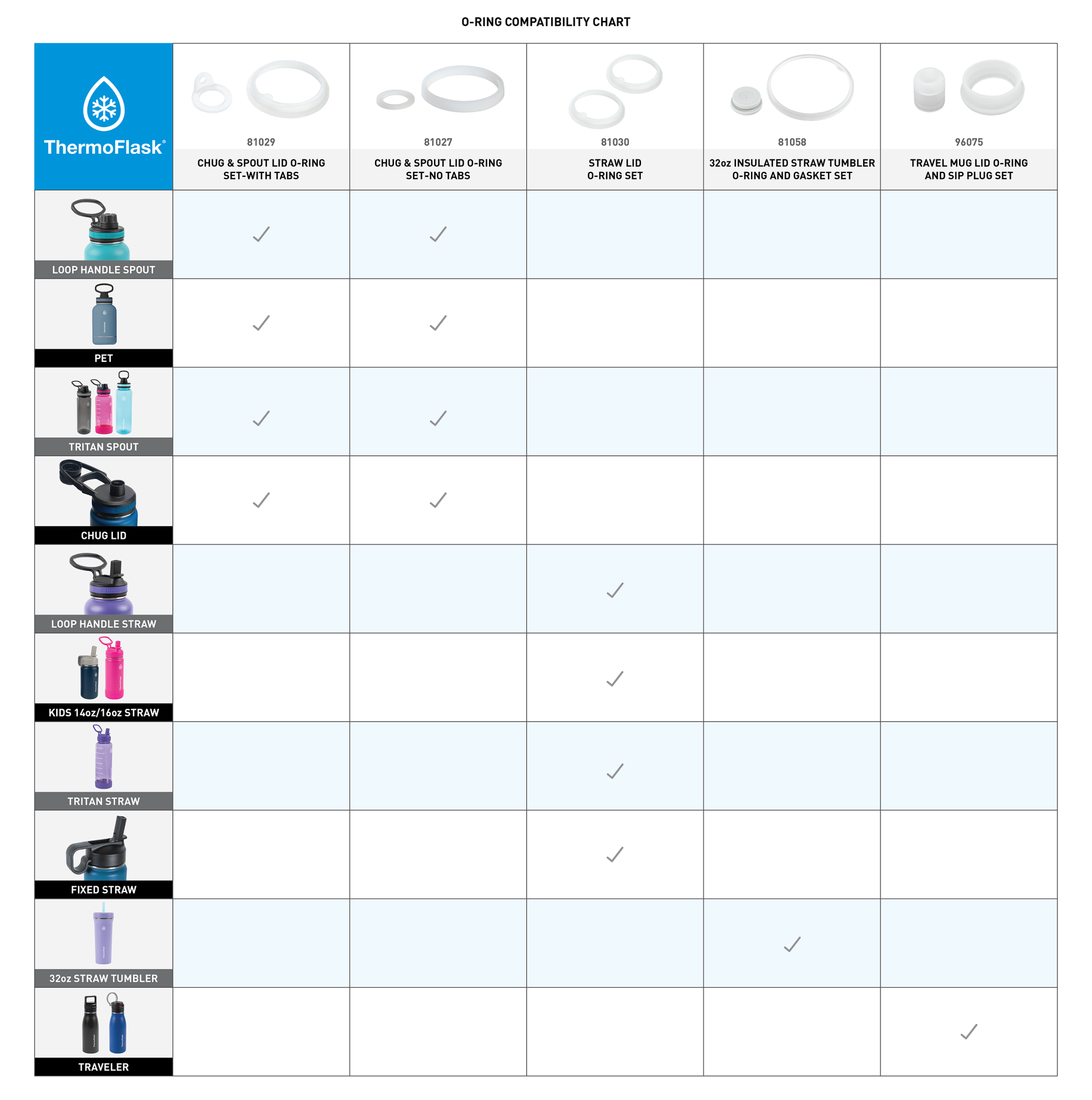 If you have the Chug or Spout Lid. (two different sized O-rings and no straw) please see replacements .