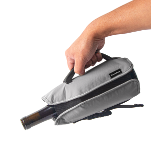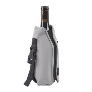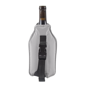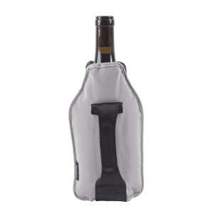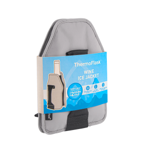 A modern twist on the bulky ice bucket. ThermoFlask’s Wine Bottle Ice Jacket locks in a frosty chill for up to 2 hours. so your favorite bottle of wine stays cool and crisp whether you’re lounging or adventuring. Light and portable. the stretchy collar fits most wine bottles on the inside and the durable nylon protects that sparkling goodness on the outside. We added an adjustable buckle for an extra snug fit. a side strap that double-duties for carrying and pouring. and a fold-flat design for slim storage—in your freezer!